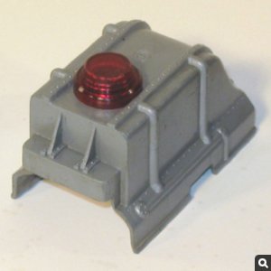 1) Gray plastic crisscross tower with revolving light on fenced black platform; black ( square base; chrome ladder