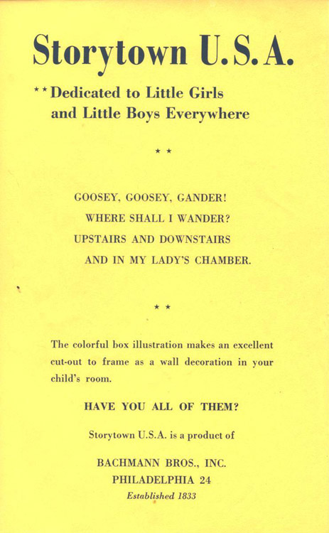 We know that there were two Storytown catalogs produced. One was definitely published in 1958 as it is marked. The other is likely from 1957, if we follow Bachmann's usual catalog numbering system. The only difference in the front covers of the two is that one states "Catalog B-1958" in the upper right corner.